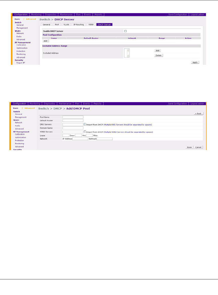 4. On the Add DHCP Pool page, enter information about the subnetwork for which IP addresses