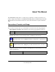About This Manual The NETGEAR® 108 Mpbs Wireless USB 2.0 Adapter WG111T User Manual describes how to install, configure and troubleshoot the NETGEAR 108 Mbps Wireless USB 2.0 Adapter WG111T. The information in this manual is intended for readers with intermediate computer and Internet skills. Conventions, Formats, and Scope The conventions, formats, and scope of this manual are described in the following paragraphs: • • Typographical Conventions.