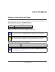 About This Manual Audience, Conventions, and Scope This manual assumes that you have basic to intermediate computer and Internet skills. However, tutorial information is provided on the NETGEAR website. This manual uses the following typographical conventions: Italics Emphasis, books, CDs, URL names Bold User input This manual uses the following formats to highlight special messages: Note: This format is used to highlight information of importance or special interest.