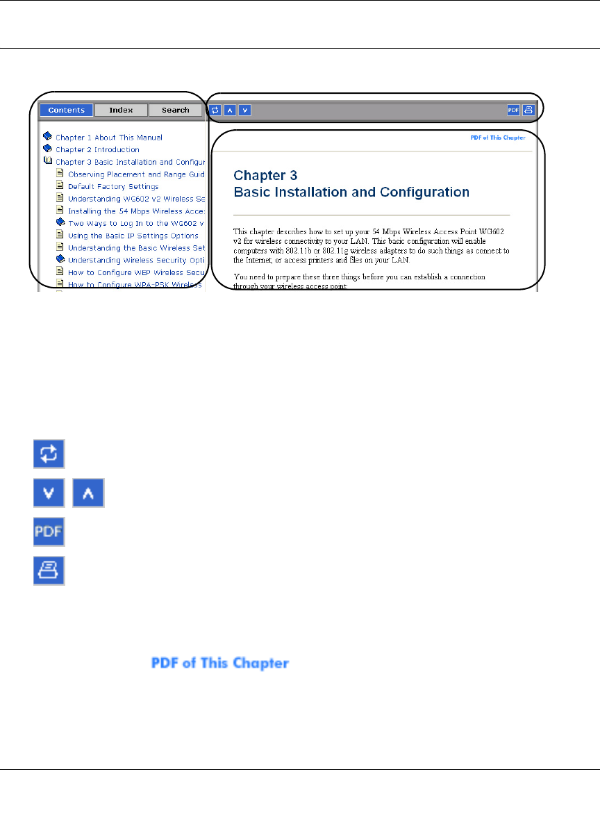 3. Right pane. Use the right pane to view the contents of the manual. Also, each page of the