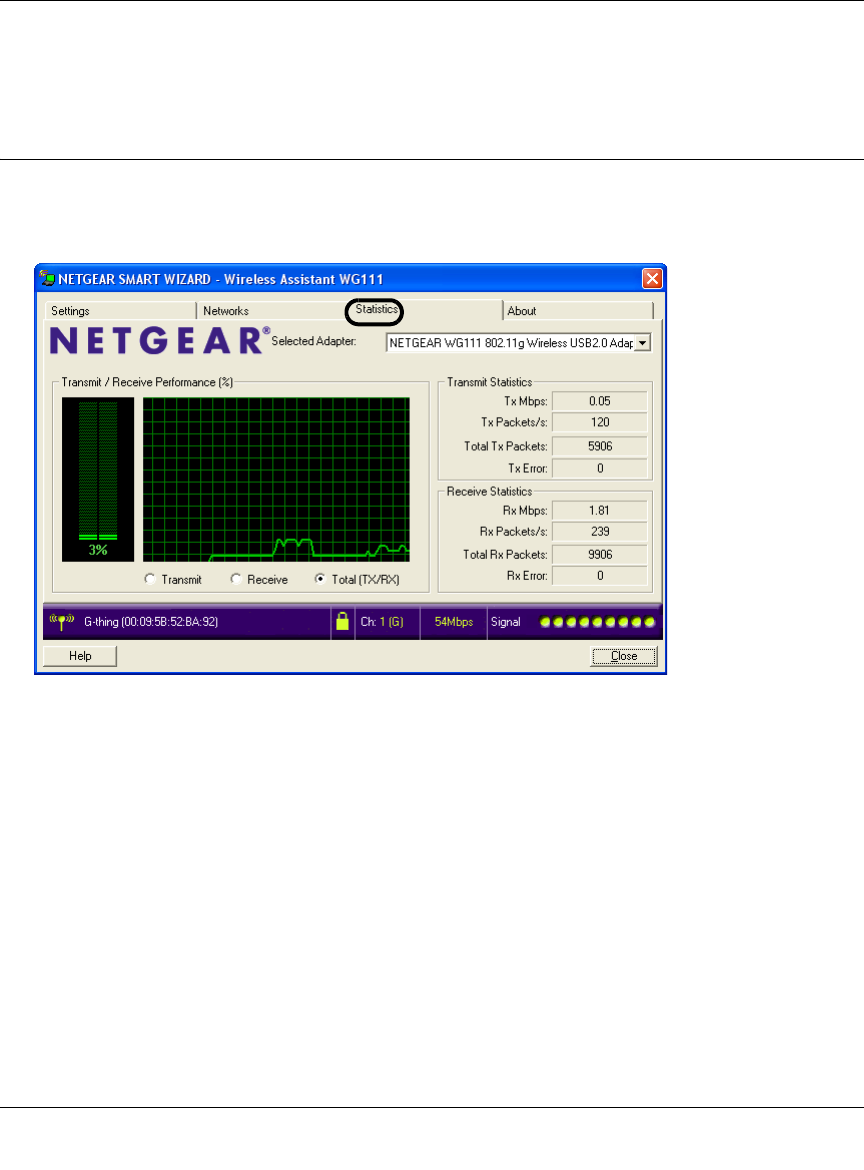 - The WG111 status line displays a speed lower than 54 Mbps