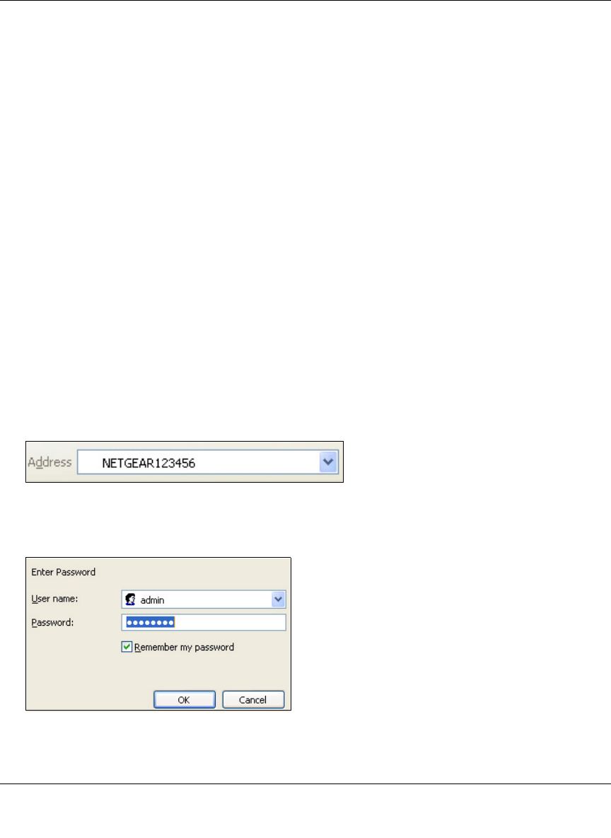 In this example, you see NETGEAR123456 in the browser address or location box. There is