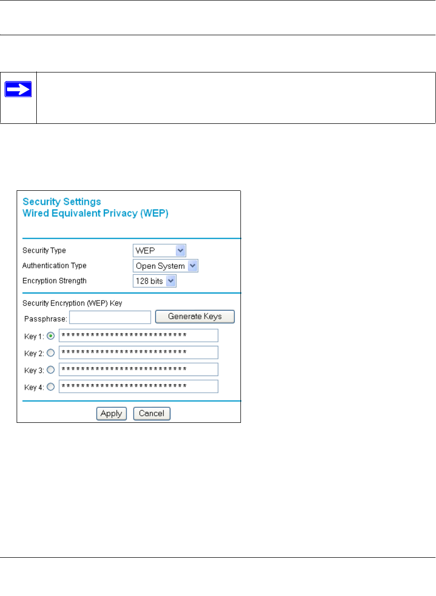 Note: If you use a wireless PC to configure WEP settings, you will be disconnected