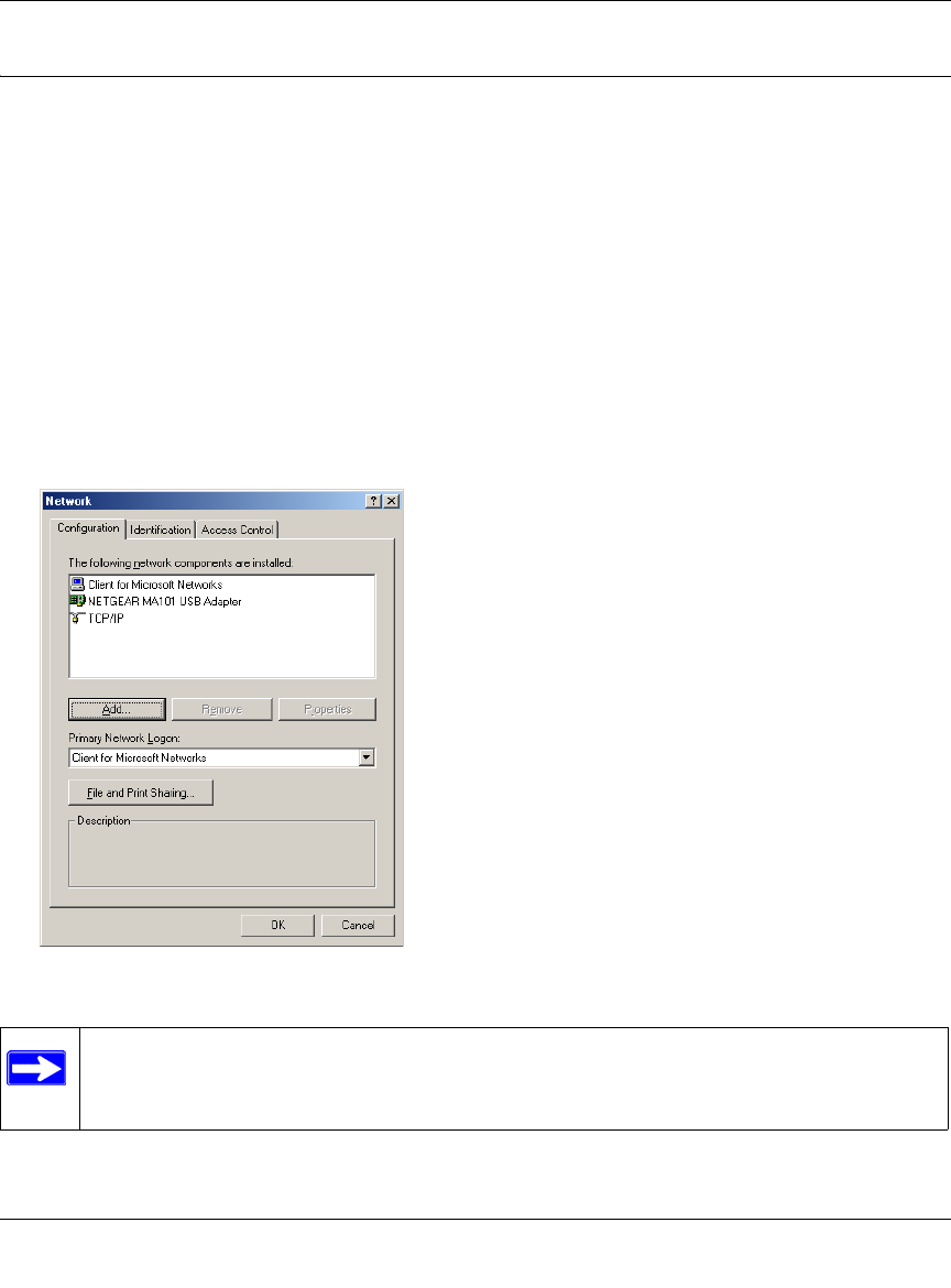 Network window in order to install the adapter, TCP/IP, or Client for Microsoft