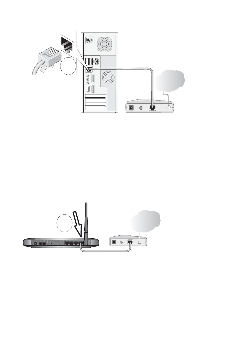 insert the Ethernet cable from your modem (cable 1 in the diagram below) into the Internet