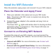 Install the WiFi Extender Place the extender, apply power, and connect it to your WiFi network. Place the Extender and Apply Power 1. Place your extender in the same room as your WiFi router. Note: Proximity to the WiFi router is required only during the initial setup process. 2. Connect the power adapter to the extender and plug it into an electrical outlet. The Power LED lights solid amber while it is booting and then solid green when it is powered on.