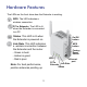 The side panel has the following features: • On/Off button. Turns the device on and off. • WPS button. Press the WPS button to wirelessly connect the Extender to your router or wireless adapter. • Factory Reset button. To use this button, stick a paper clip into the reset hole and hold it until the Status LED flashes. • Ethernet port. You can connect a computer or other device to this port as described in the User Manual.