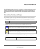 About This Manual The NETGEAR® RangeMax™ Wireless PC Card WPN511 User Manual describes how to install, configure, and troubleshoot the NETGEAR RangeMax NEXT Wireless PCI Adapter WN311T. The information in this manual is intended for readers with intermediate computer and Internet skills. Conventions, Formats, and Scope The conventions, formats, and scope of this manual are described in the following paragraphs: • • Typographical Conventions.