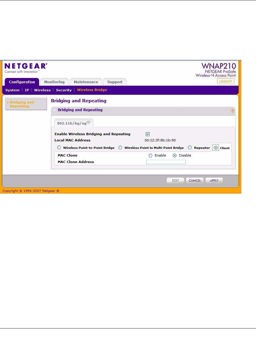 Select the Enable Wireless Bridgeing and Repeating check box. This allows you to select a