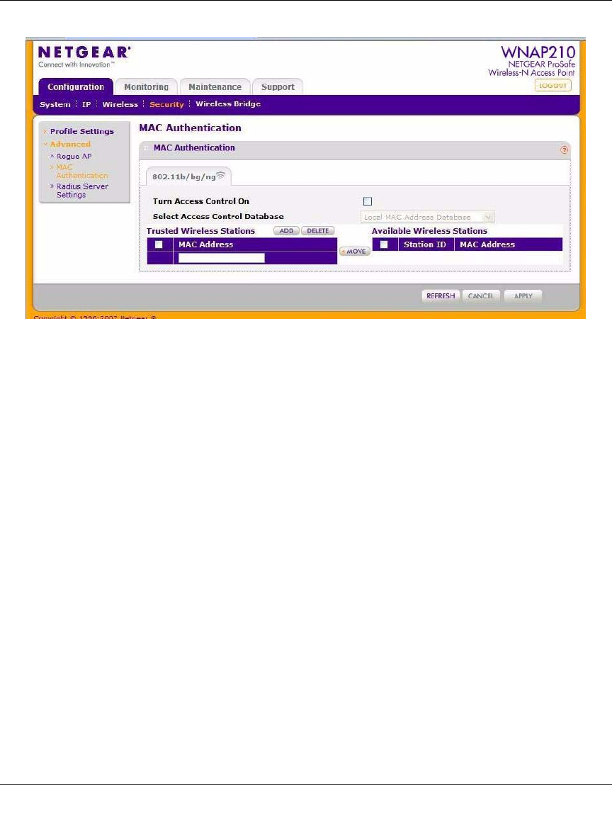 not entered any wireless stations, this list is empty. To delete an existing entry, select it and