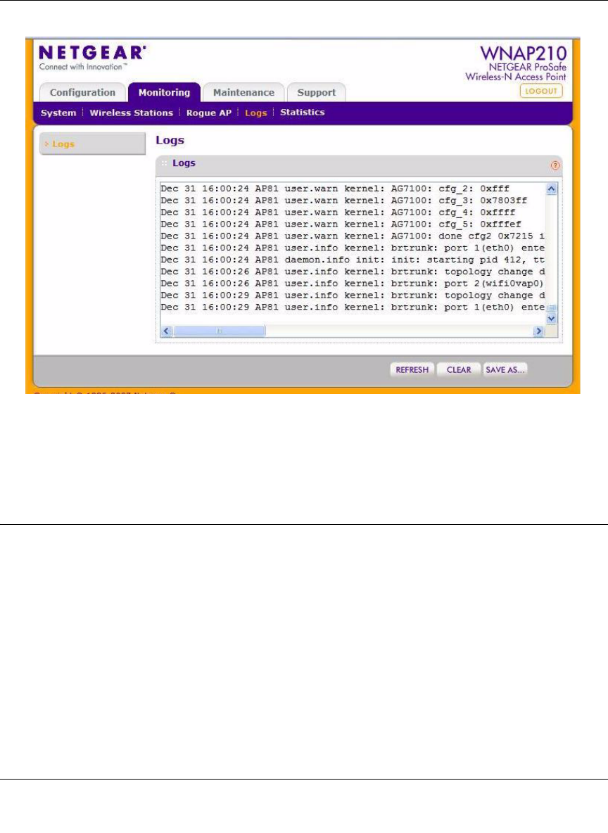 2. Click Refresh to update the display, click Clear to clear the log content, or click Save As to