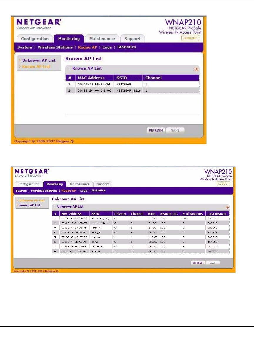 2. In the Unknown AP List or the Known AP List sections, click Refresh to update the