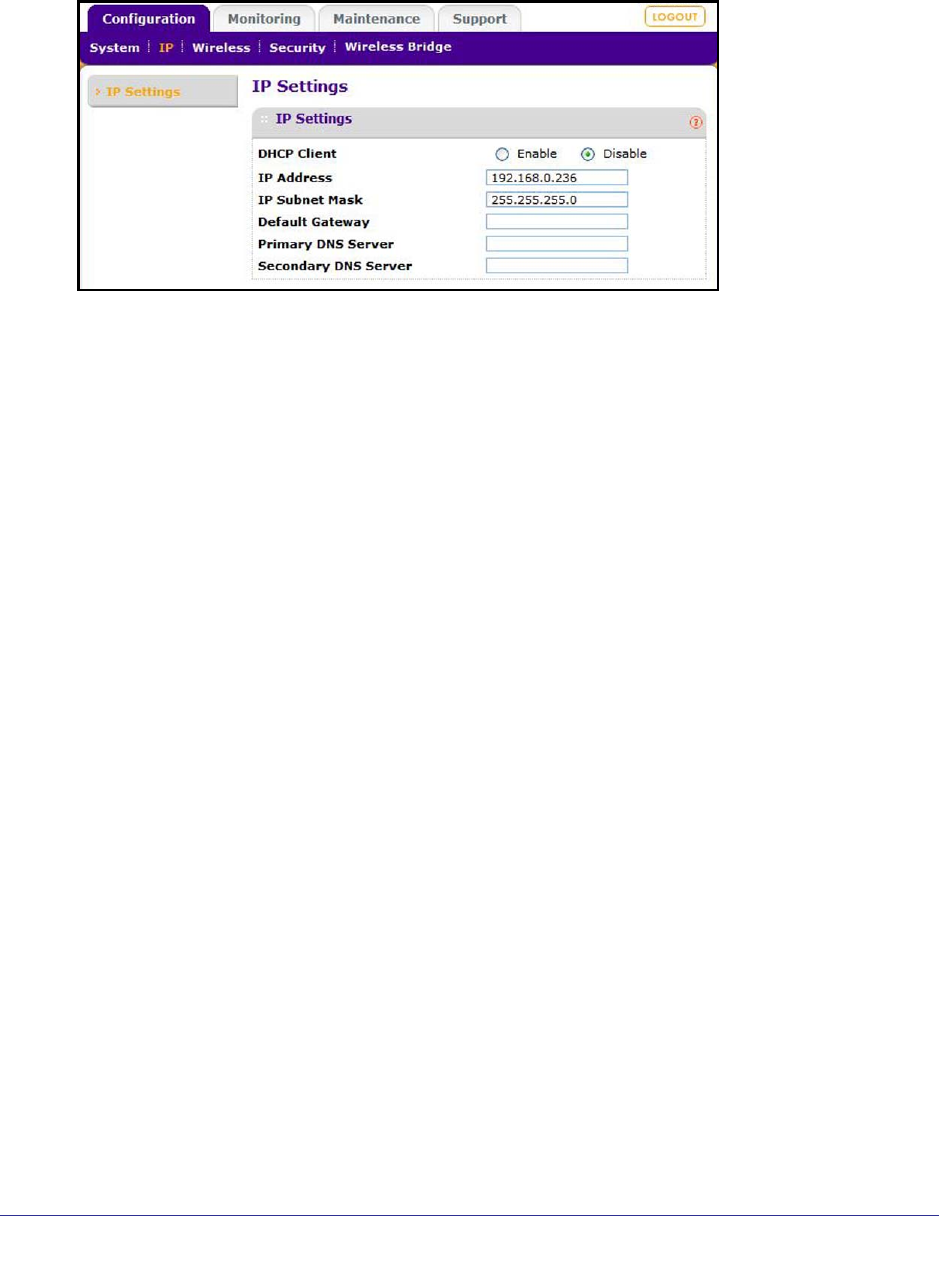 2. If necessary, edit the IP address fields described in IP Settings Fields on page 14.