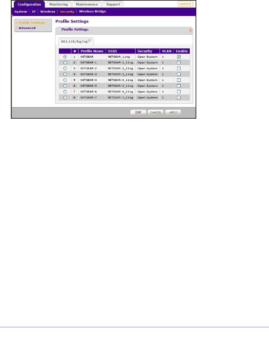Security profiles let you set up unique security settings for each SSID. You can configure up