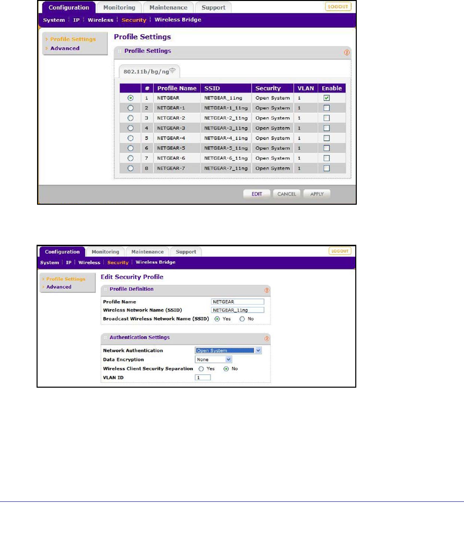 2. Select the radio button of the profile you want to modify and click Edit. The Edit Security