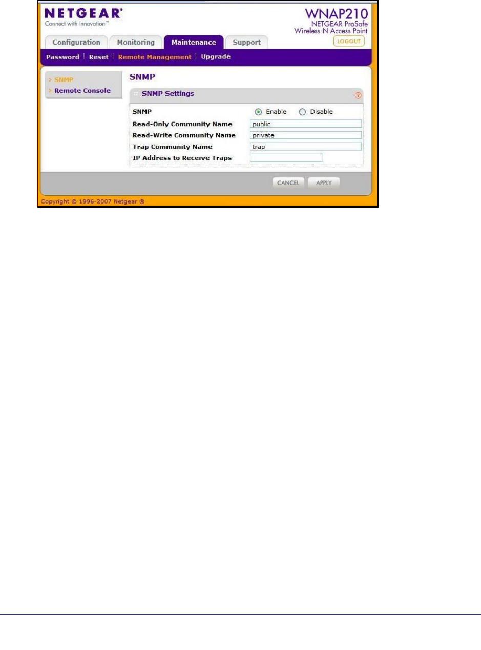 1. Select Maintenance > Remote Management > SNMP. The SNMP screen displays, as