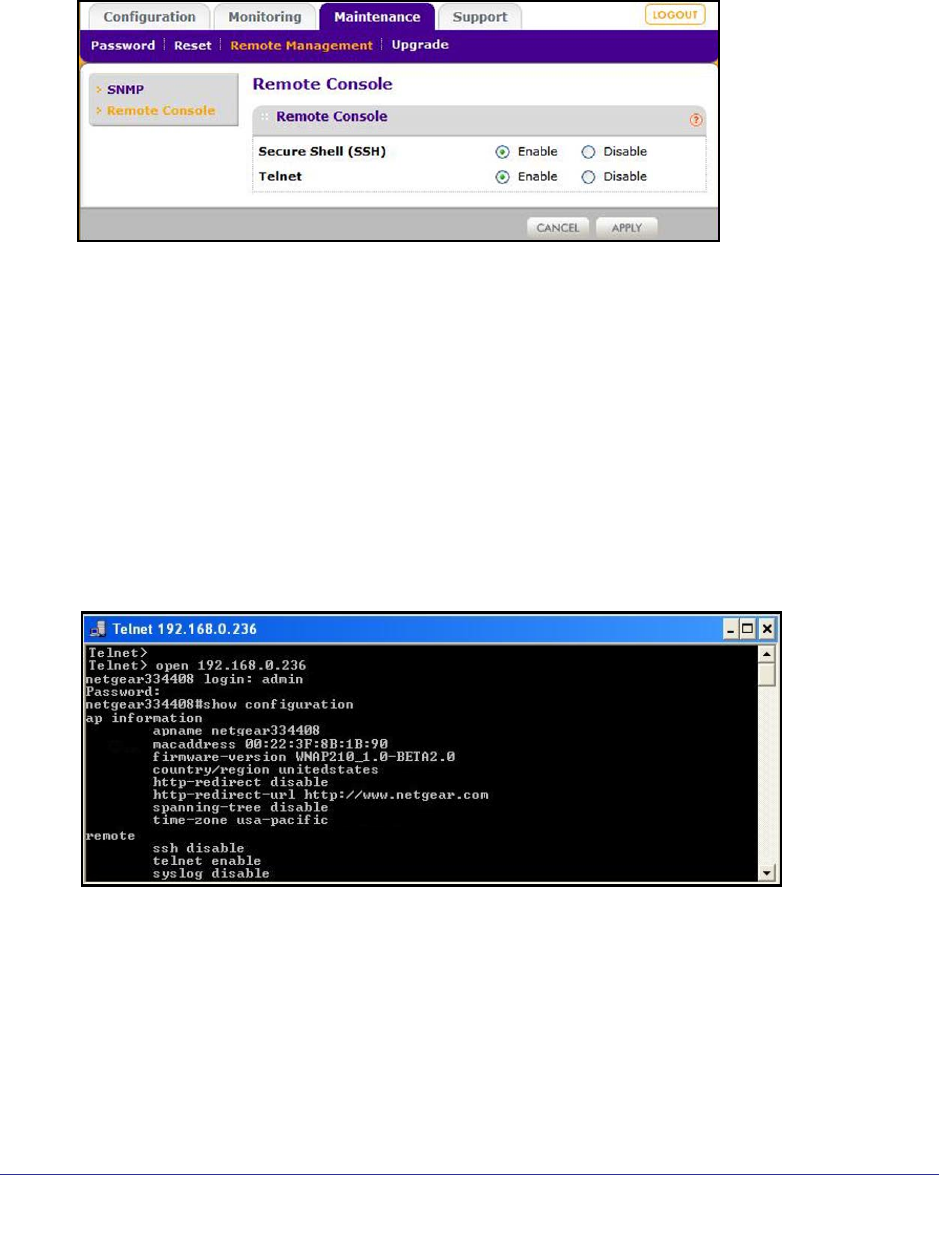 • Telnet. If set to Enable, the wireless access point allows remote access through