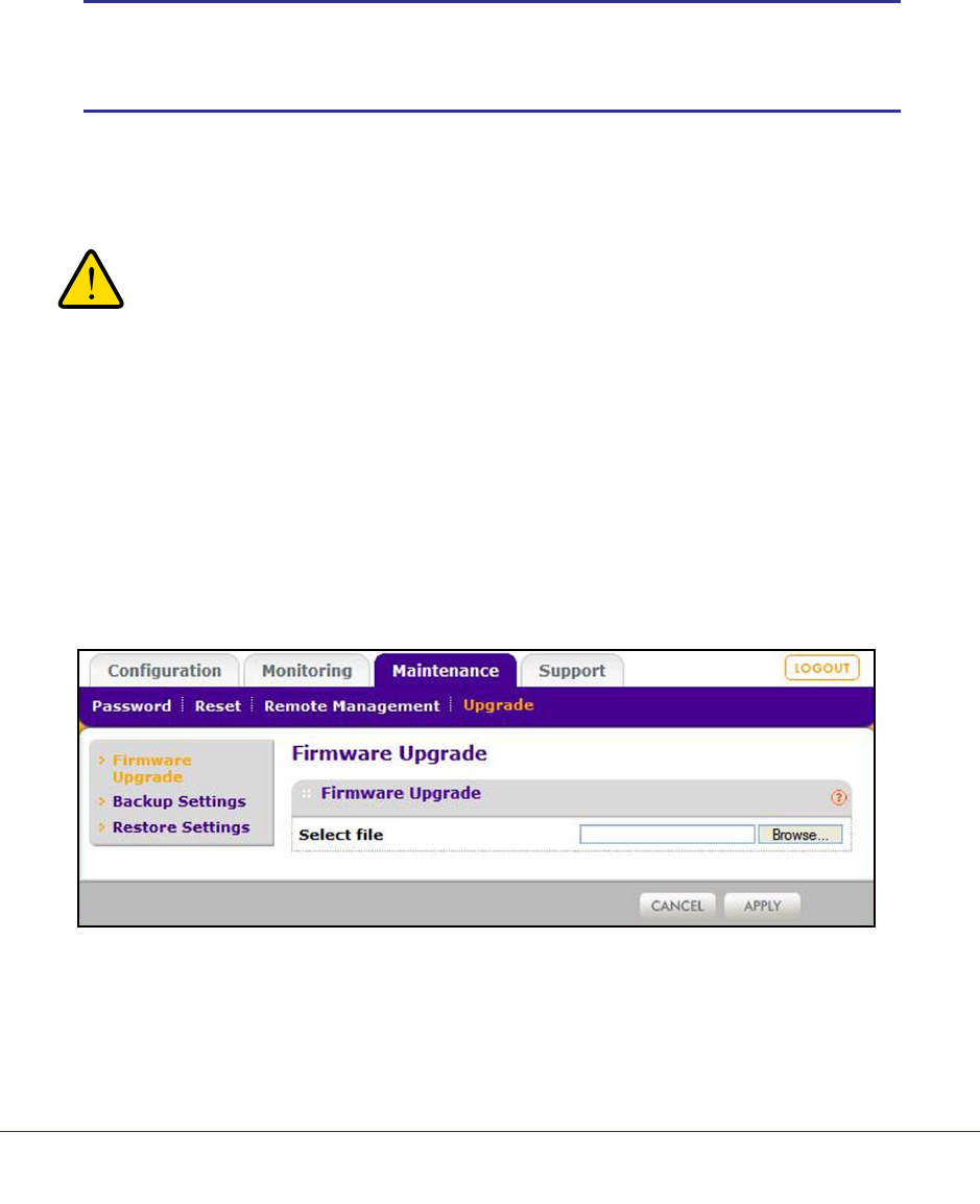 2. Select Maintenance > Upgrade > Firmware Upgrade. The Firmware Upgrade screen