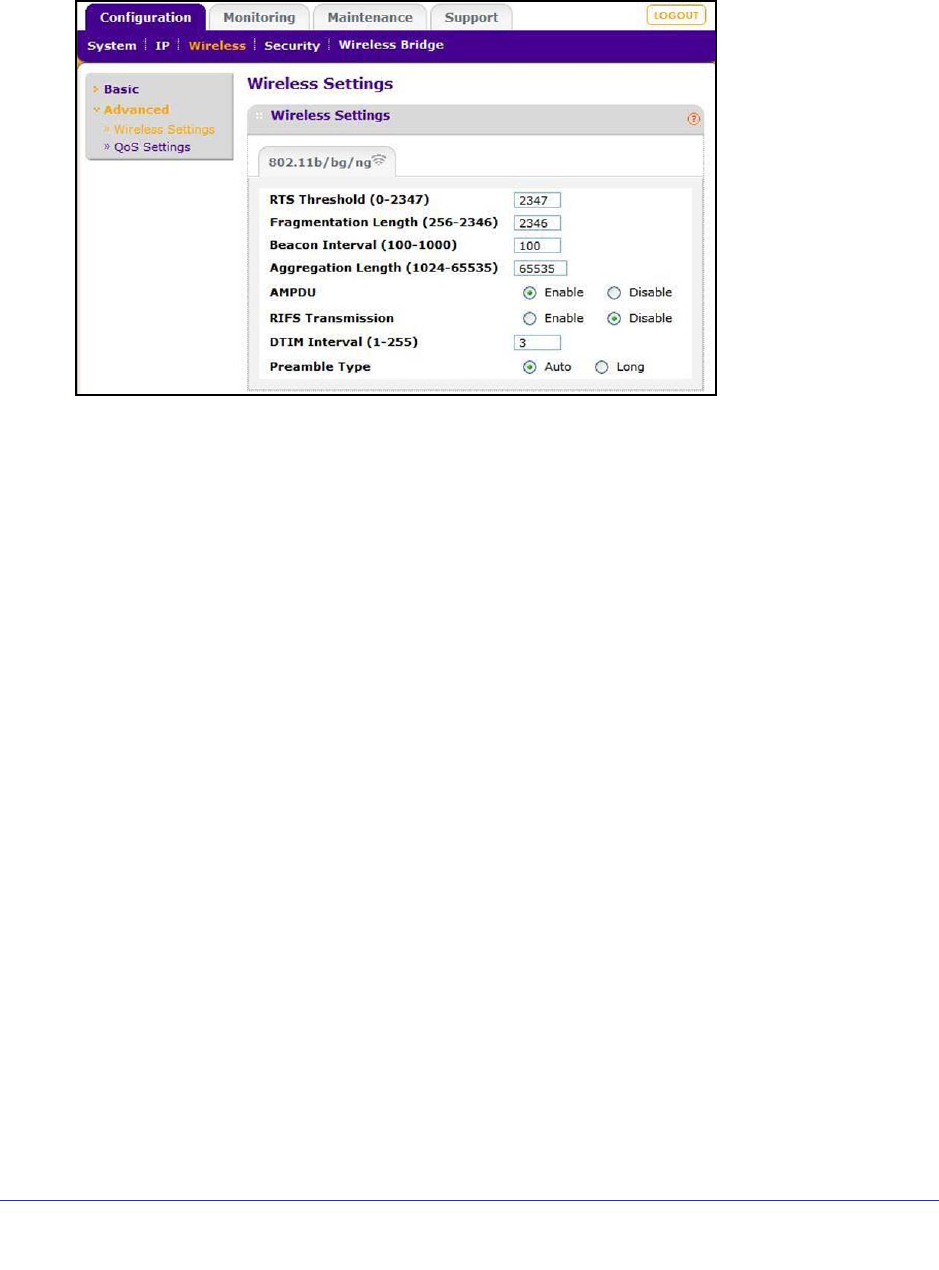 1. Select Configuration > Wireless > Advanced > Wireless Settings. The Wireless