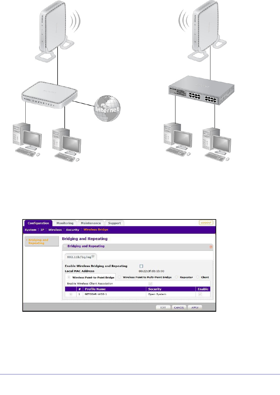 1. Select Configuration > Wireless Bridge > Bridging and Repeating. The Bridging and