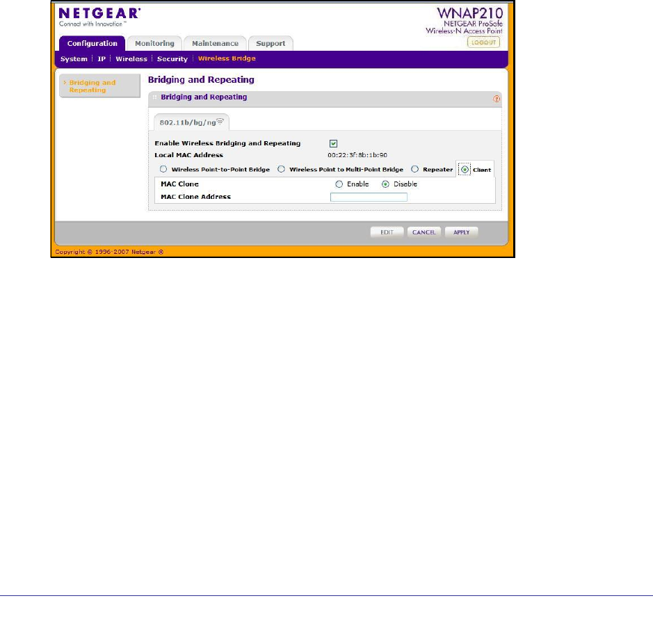 1. Select Configuration > Wireless Bridge > Bridging and Repeating. The Bridging and