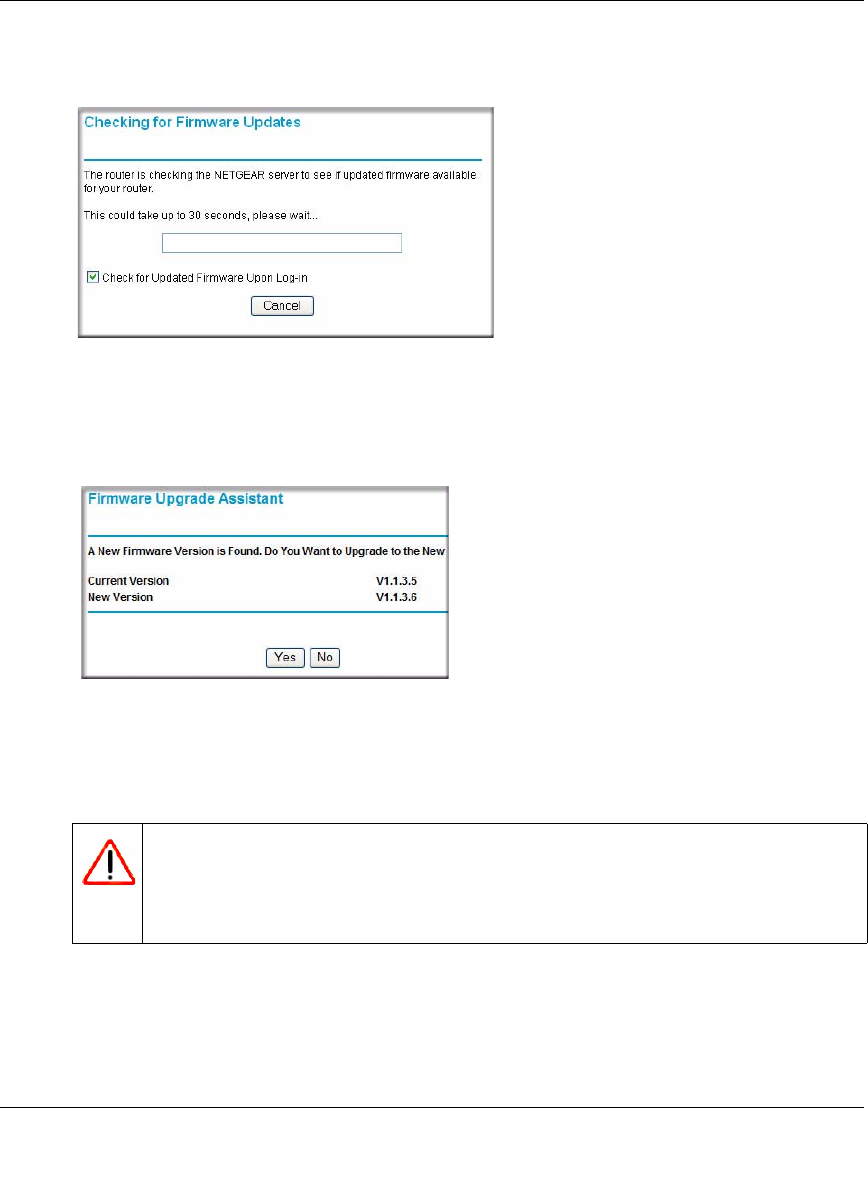 This message displays if the router discovers that new firmware is available. (If no new