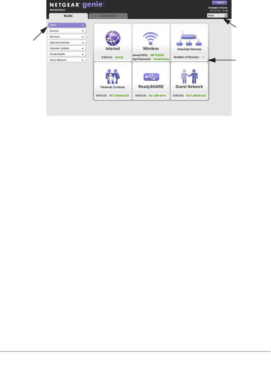 • ReadySHARE. If you connected a USB storage device to the router it is displayed here.
