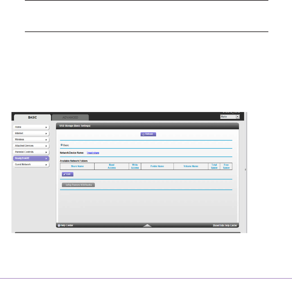You can access this feature by selecting Basic > ReadySHARE, or Advanced > USB