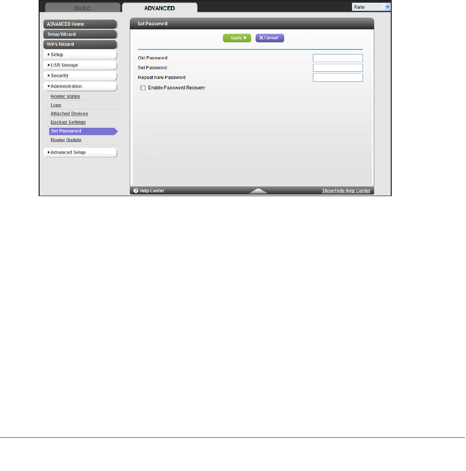 NETGEAR recommends that you enable password recovery if you change the password for
