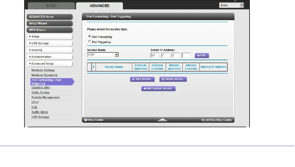 Use the Port Forwarding screen to configure the router to forward specific incoming protocols