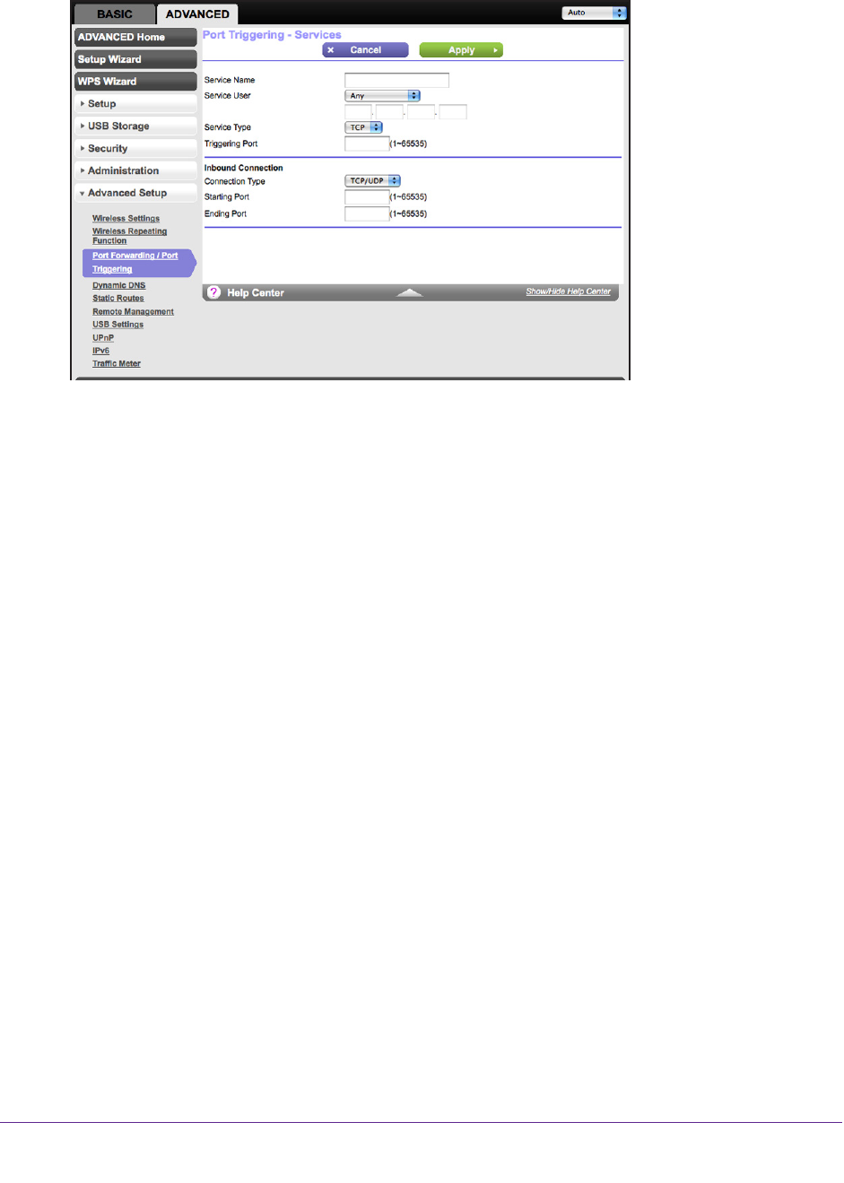 Triggering Port field, enter the number of the outbound traffic port that causes the