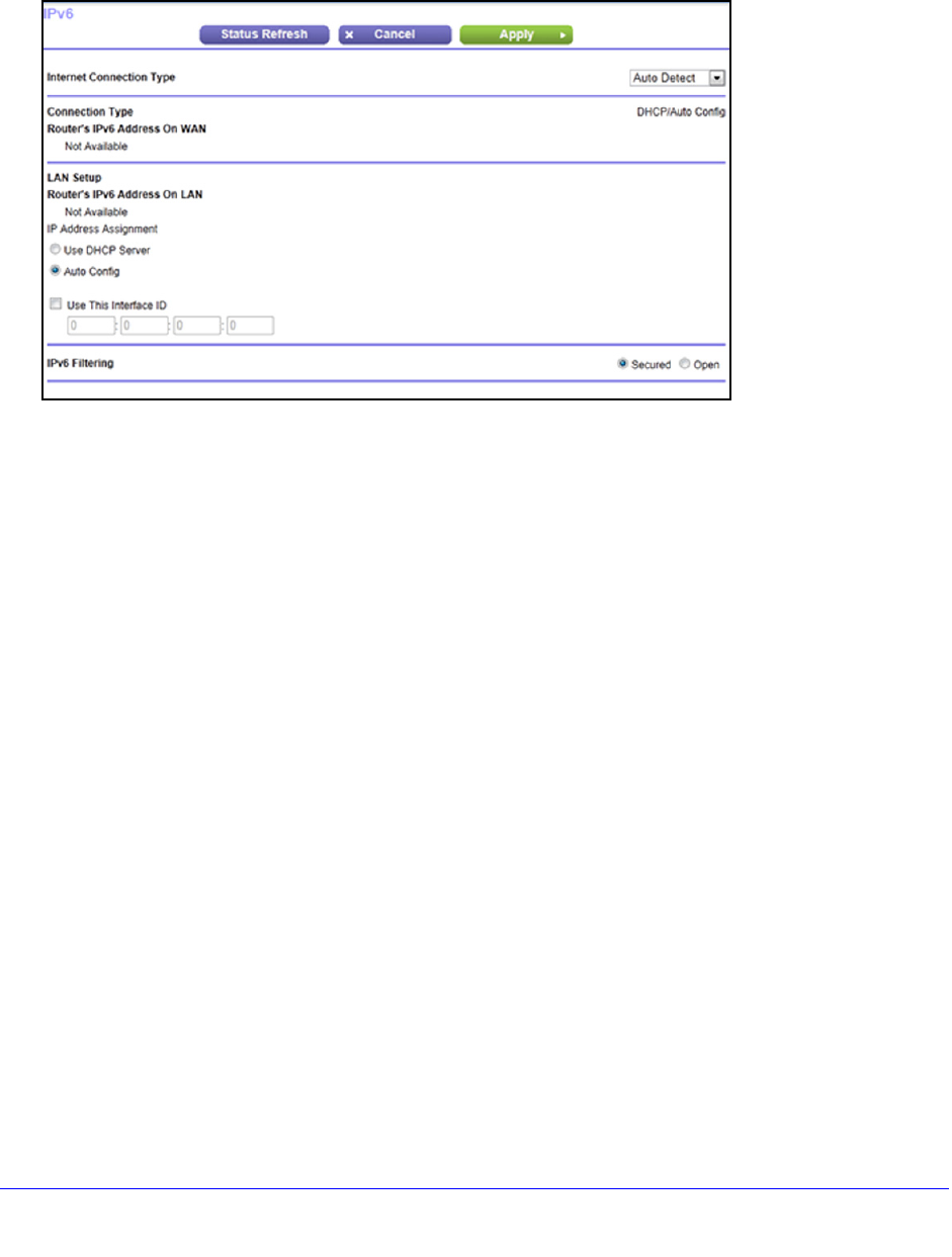 In the IPv6 screen, when you select Auto Detect from the drop-down list, the following