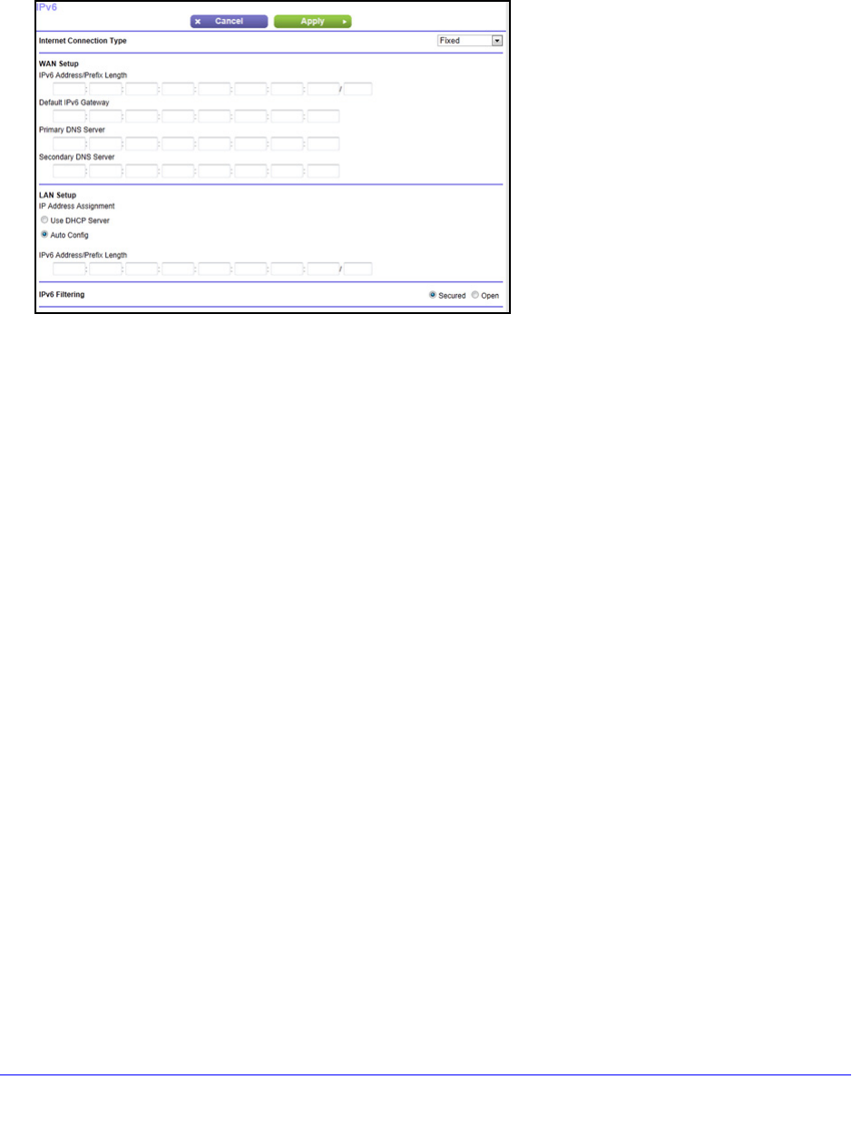 In the IPv6 screen, when you select Fixed from the drop-down list, the following screen