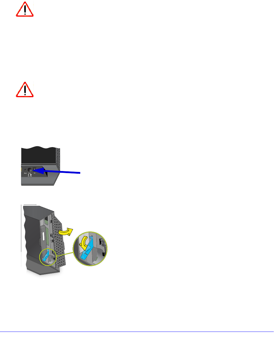 2. Open the router side door and release the internal latch as shown.