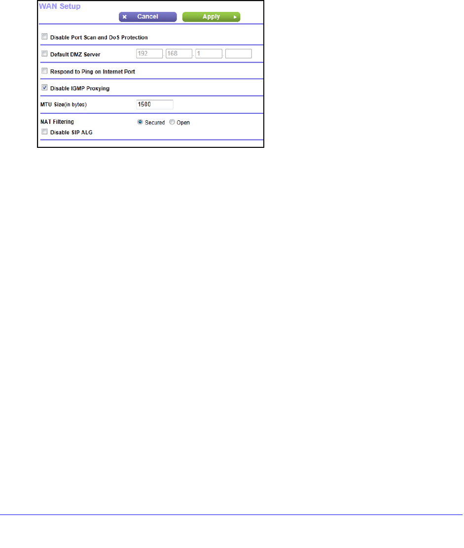 maximum transmit unit (MTU) size, and enable the router to respond to a ping on the WAN