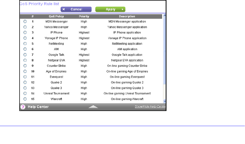able in the QoS Setup screen. For convenience, the QoS Policy table lists many
