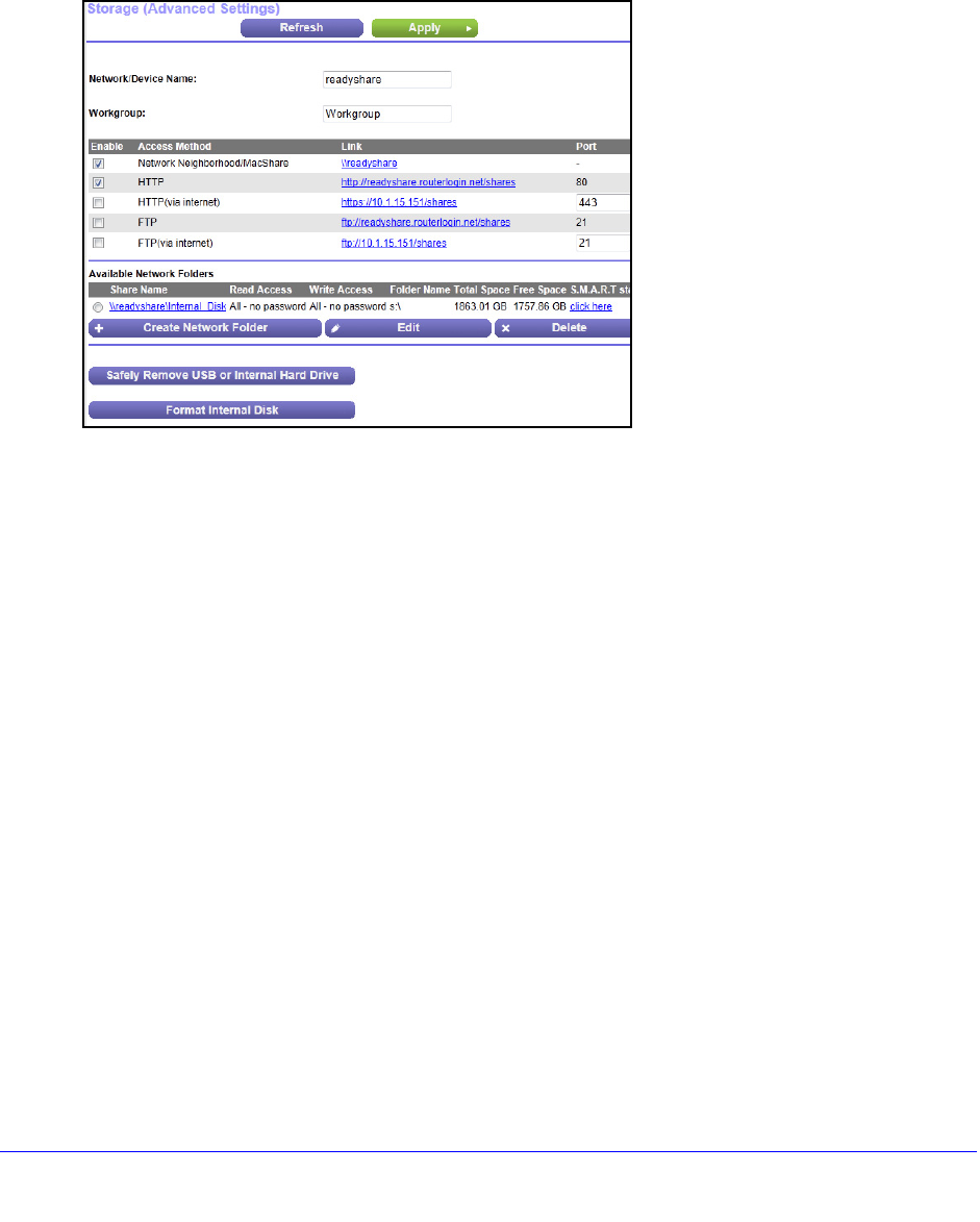 Enabled by default. You can type http://readyshare.routerlogin.net/shares to