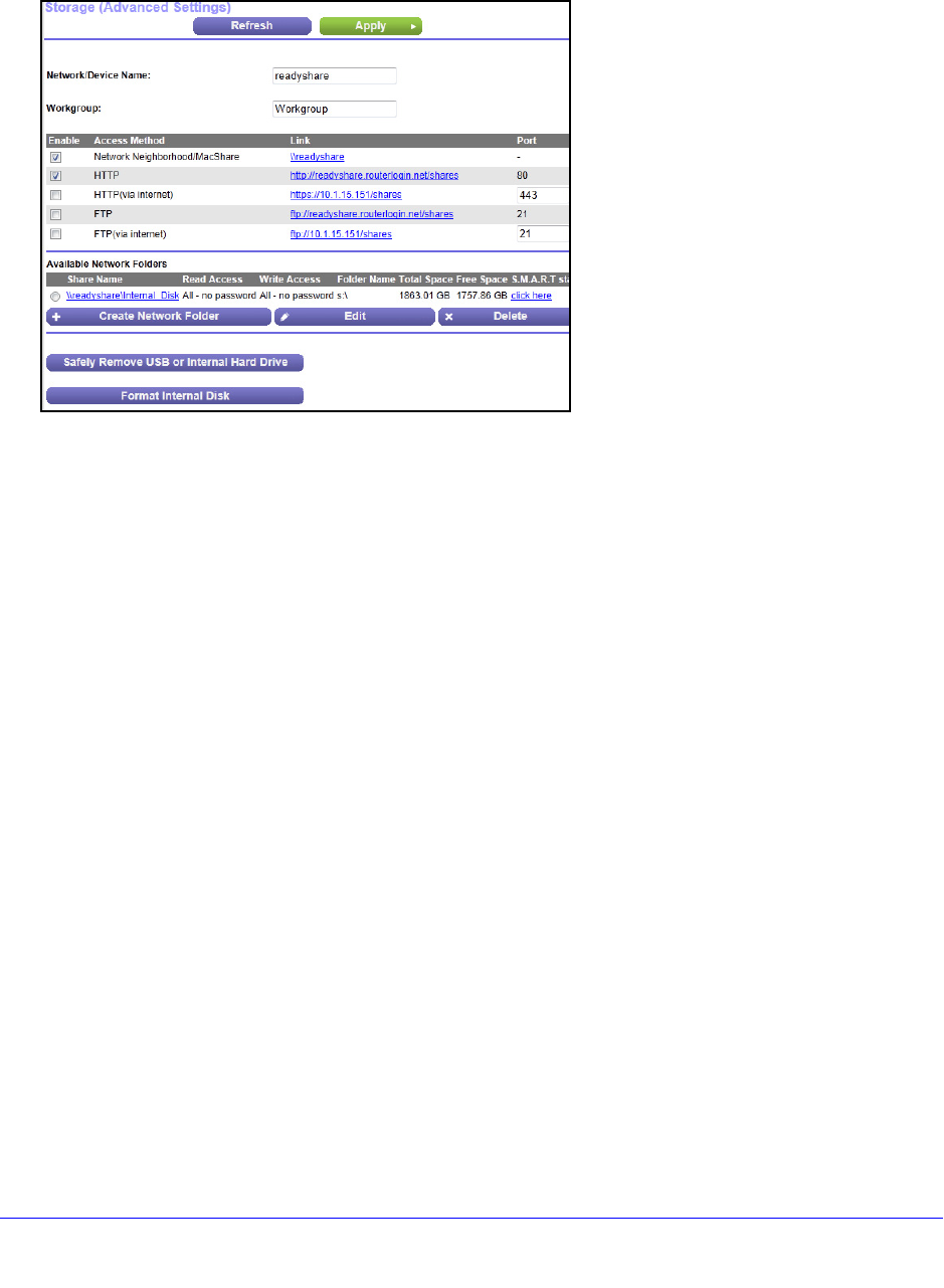 • Share Name. If only one device is connected, the default share name is USB_Storage.