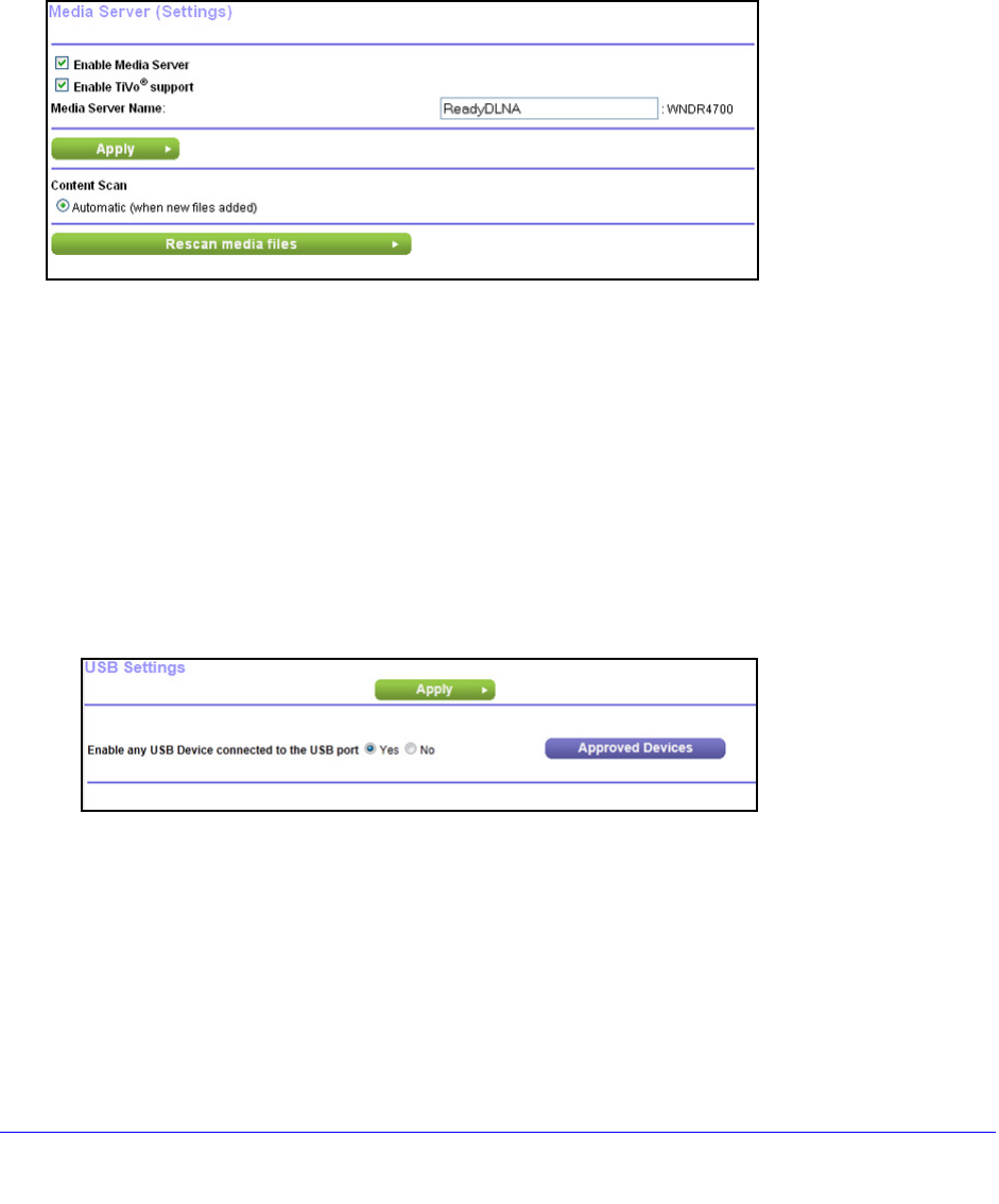 radio button are selected. When these options are selected, the router scans for media files