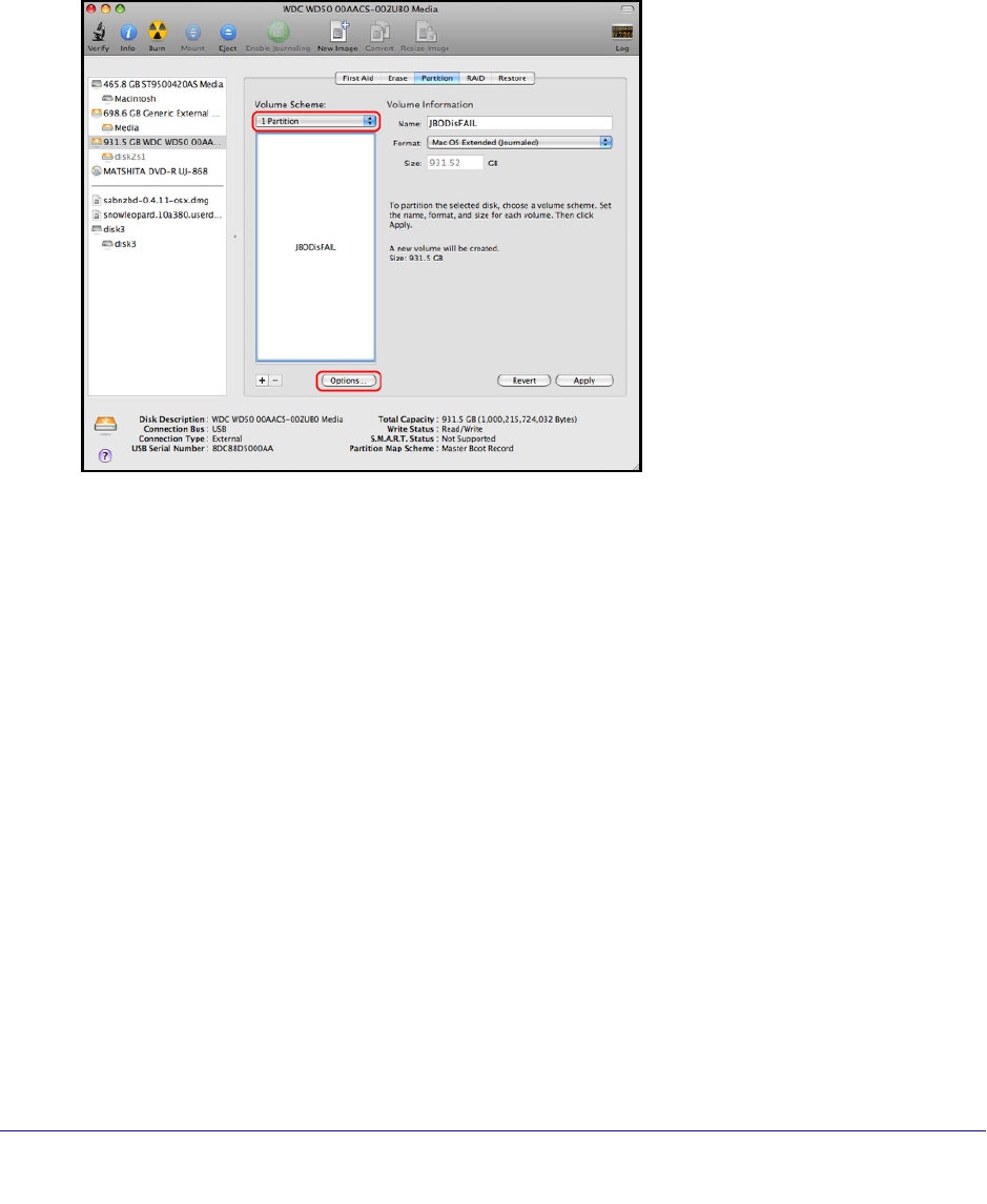 4. Click Options, and the Partition options appear.