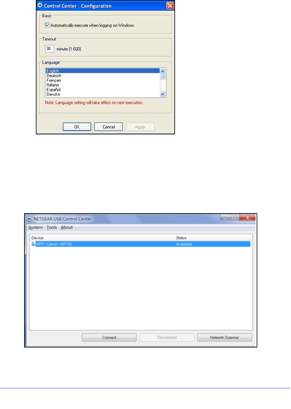 the USB printer attached to the router. If you exit the utility, printing does not work.
