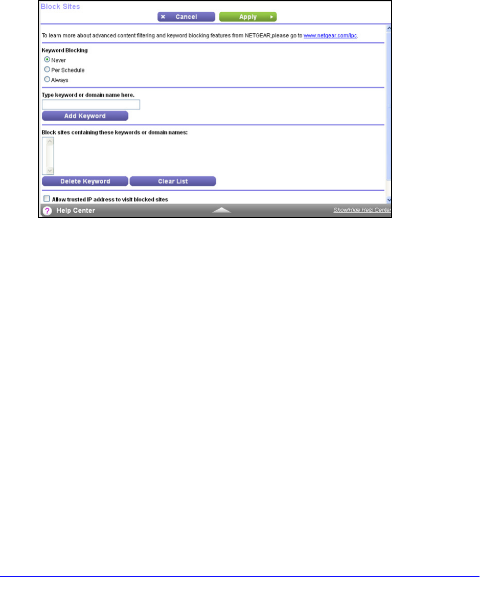 dule. Turn on keyword blocking according to the Schedule screen settings.