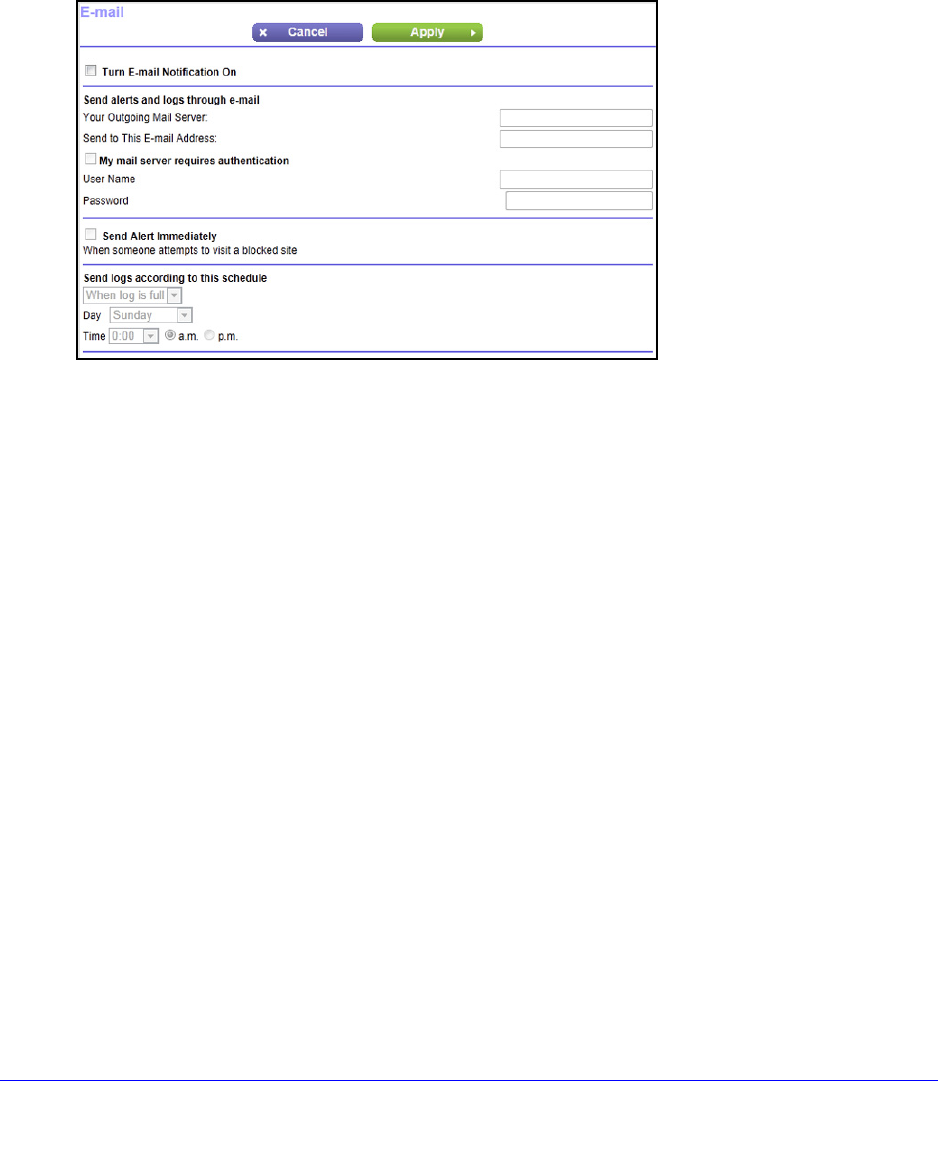 cleared from the router’s memory. If the router cannot email the log file, the log buffer
