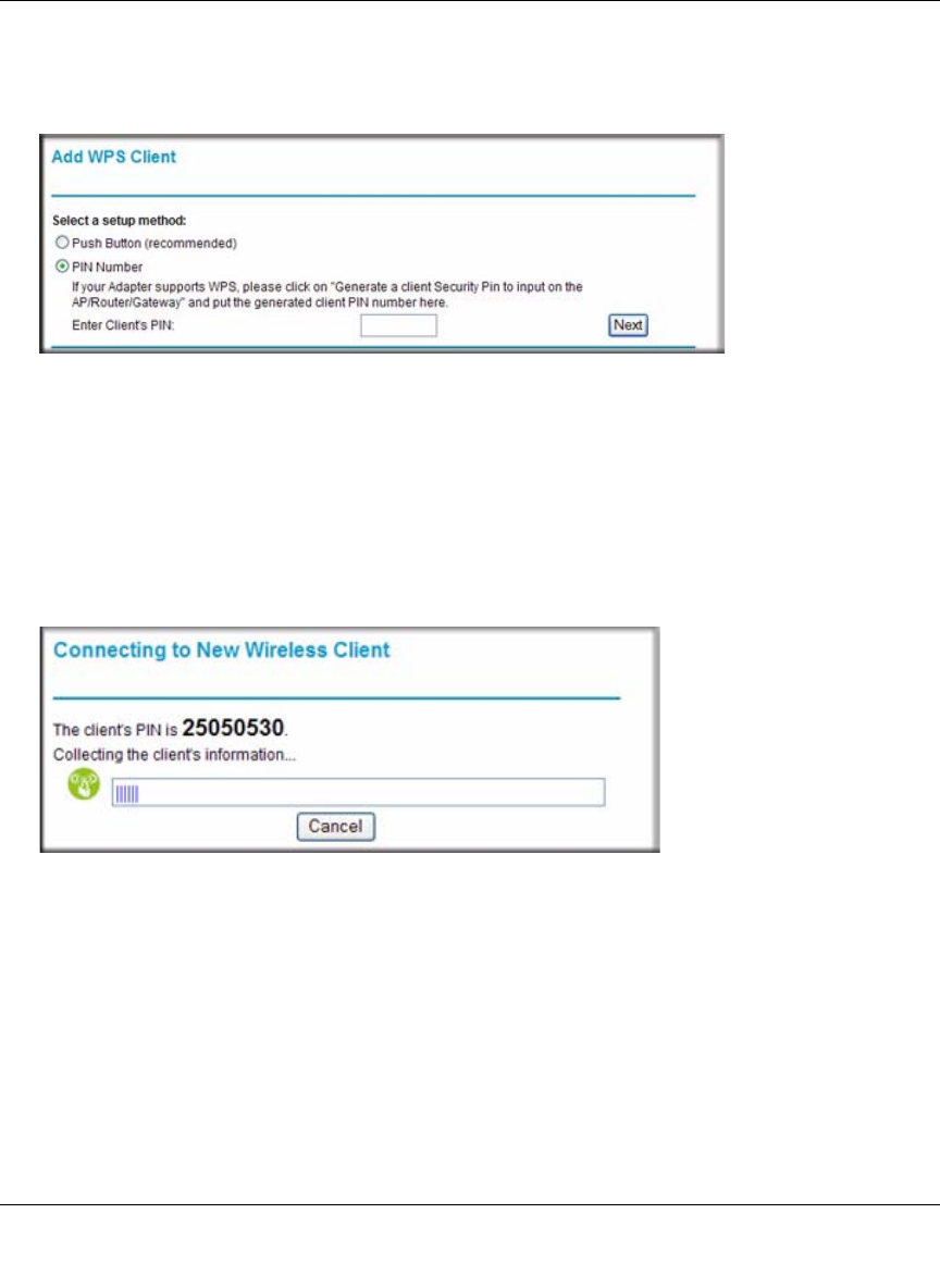 4. On the wireless client, obtain its security PIN, or follow its specific networking instructions to