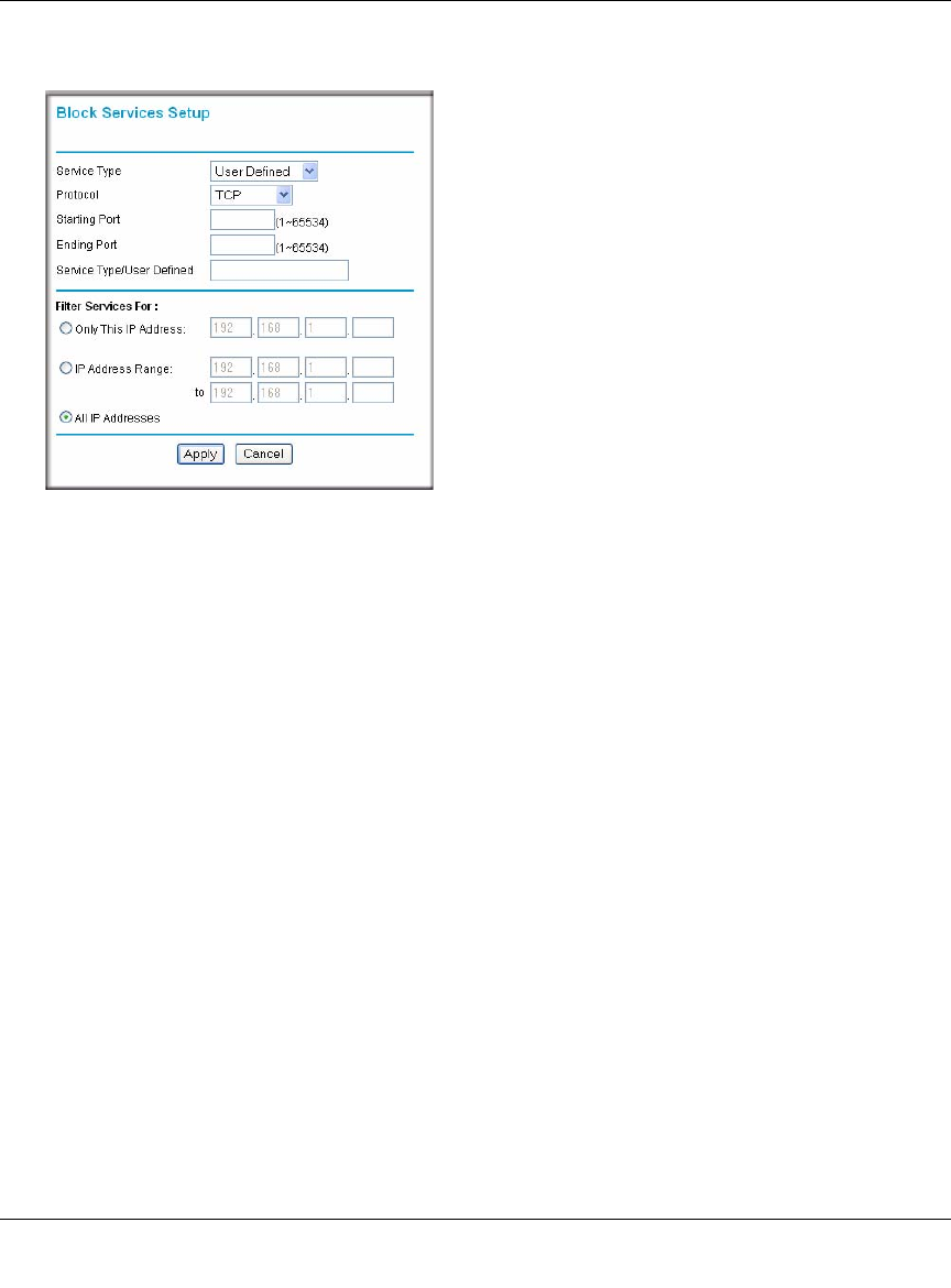 3. Specify a service for blocking by clicking Add. The Block Services Setup screen displays.