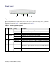 Front Panel 1 3 2 4 5 6 Figure 2 The front panel has seven status lights that you can use to monitor and verify various conditions. There are also two switch buttons on the right (or at the top if the router is in its stand). The status lights are described in Table 1, and the switch buttons in Table 2. Table 1. Status Light Descriptions Item Function 1. 2. 3. 4. Activity Power/Test Solid Amber Internet The unit is starting up after being powered on.