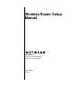 Contents Wireless Router Setup Manual Chapter 1 Connecting the Router to the Internet What’s in the Box? ..........................................................................................................1-1 The Wireless Router Label .......................................................................................1-1 The Front of the Wireless Router .............................................................................1-2 The Back of the Wireless Router .................................