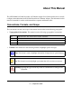 About This Manual The NETGEAR® XAV1004 Powerline AV Ethernet Adapter User Guide describes how to install, configure and troubleshoot the XAV1004 Powerline AV Ethernet Adapter. The information in this manual is intended for readers with intermediate computer and Internet skills. Conventions, Formats, and Scope The conventions, formats, and scope of this manual are described in the following paragraphs: • • Typographical Conventions.