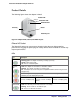 Powerline AV 200 Nano Adapter XAV2101 Product Details The following figure shows the adapter in detail: Power LED Powerline LED Ethernet LED Reset Security Ethernet port Figure 2. Adapter LEDs, buttons, and Ethernet port Filtered AC Socket The filtered AC socket can remove some electrical noise that can affect powerline performance. Plugging the power plugs of nearby devices into the filtered AC socket may improve performance. LEDs Item Description Power LED • • • • Powerline LED • Solid.