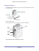XAVN2001 Powerline AV 200 Wireless-N Extender LED and Feature Descriptions The following table describes the status LEDs on the Powerline AV 200 Wireless-N Extender. Table 1. LED descriptions Item Description Power LED • Solid green. The electrical power is on. • Blinking green.The adapter is in the process of restarting or setting up security. • Amber. Power saving mode. The unit enters power saving mode if the Ethernet port is not linked for more than 10 minutes. • Off.
